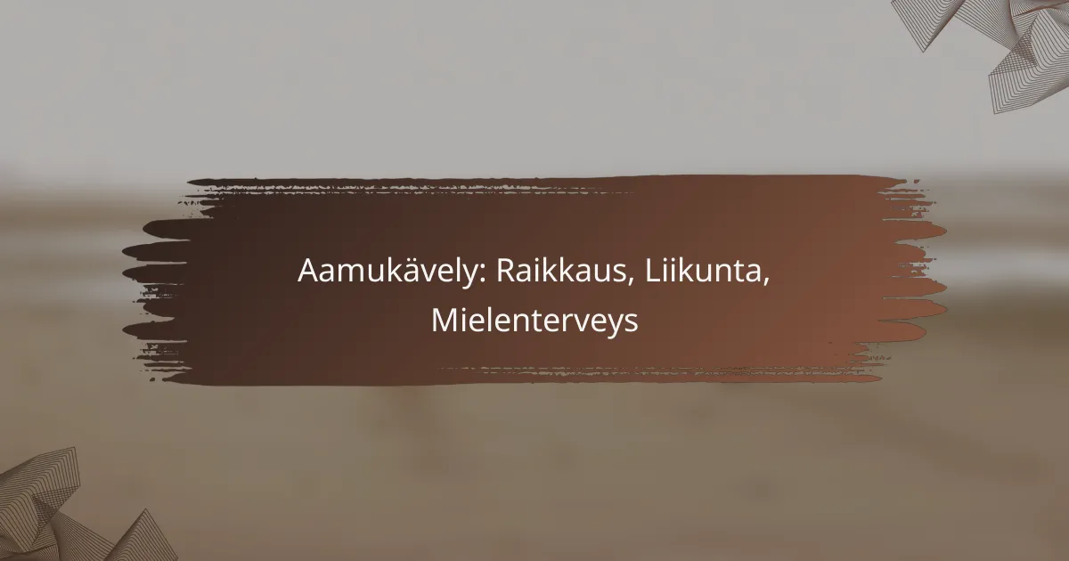 Aamukävely tarjoaa monia etuja, jotka parantavat sekä fyysistä että henkistä hyvinvointia. Se voi nostaa energiatason, parantaa mielialaa ja edistää kestävyyttä ja lihaskuntoa.