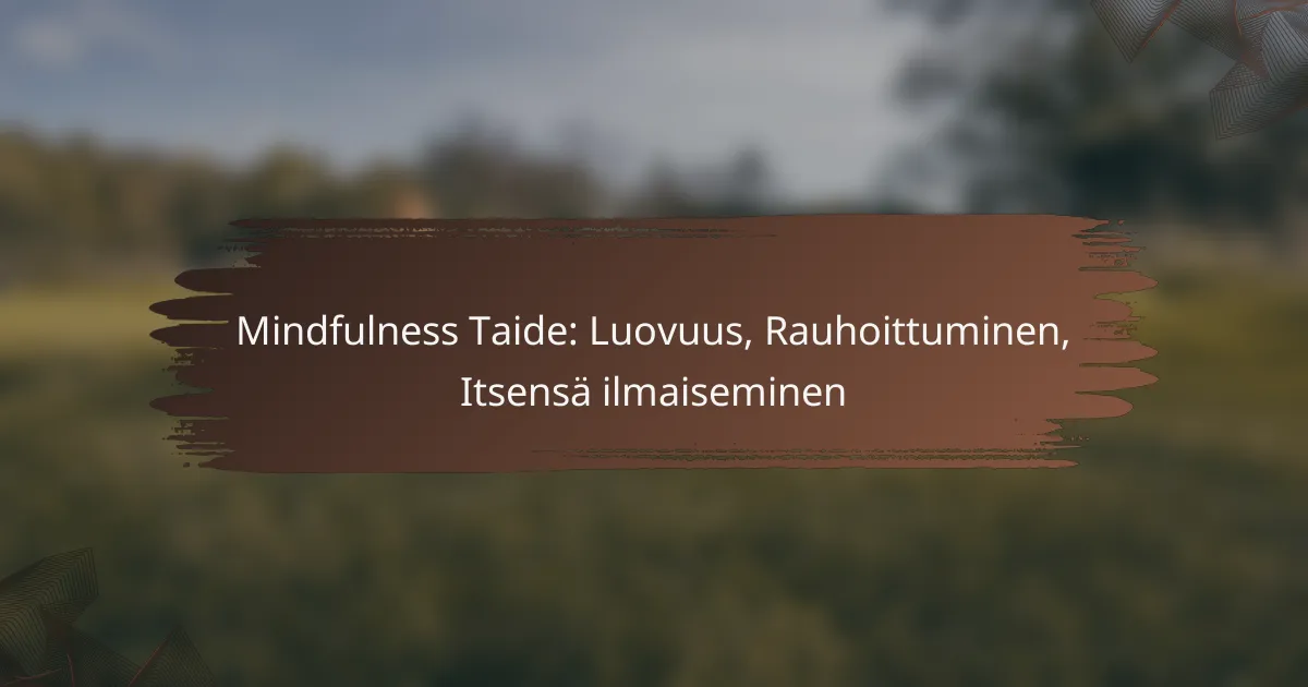 Mindfulness-taide yhdistää tietoisen läsnäolon ja luovan ilmaisun, tarjoten välineitä rauhoittumiseen ja itsensä ilmaisemiseen. Tämän taiteen muodon avulla ihmiset voivat syventää ymmärrystään itsestään ja ympäristöstään, samalla kehittäen luovuuttaan.